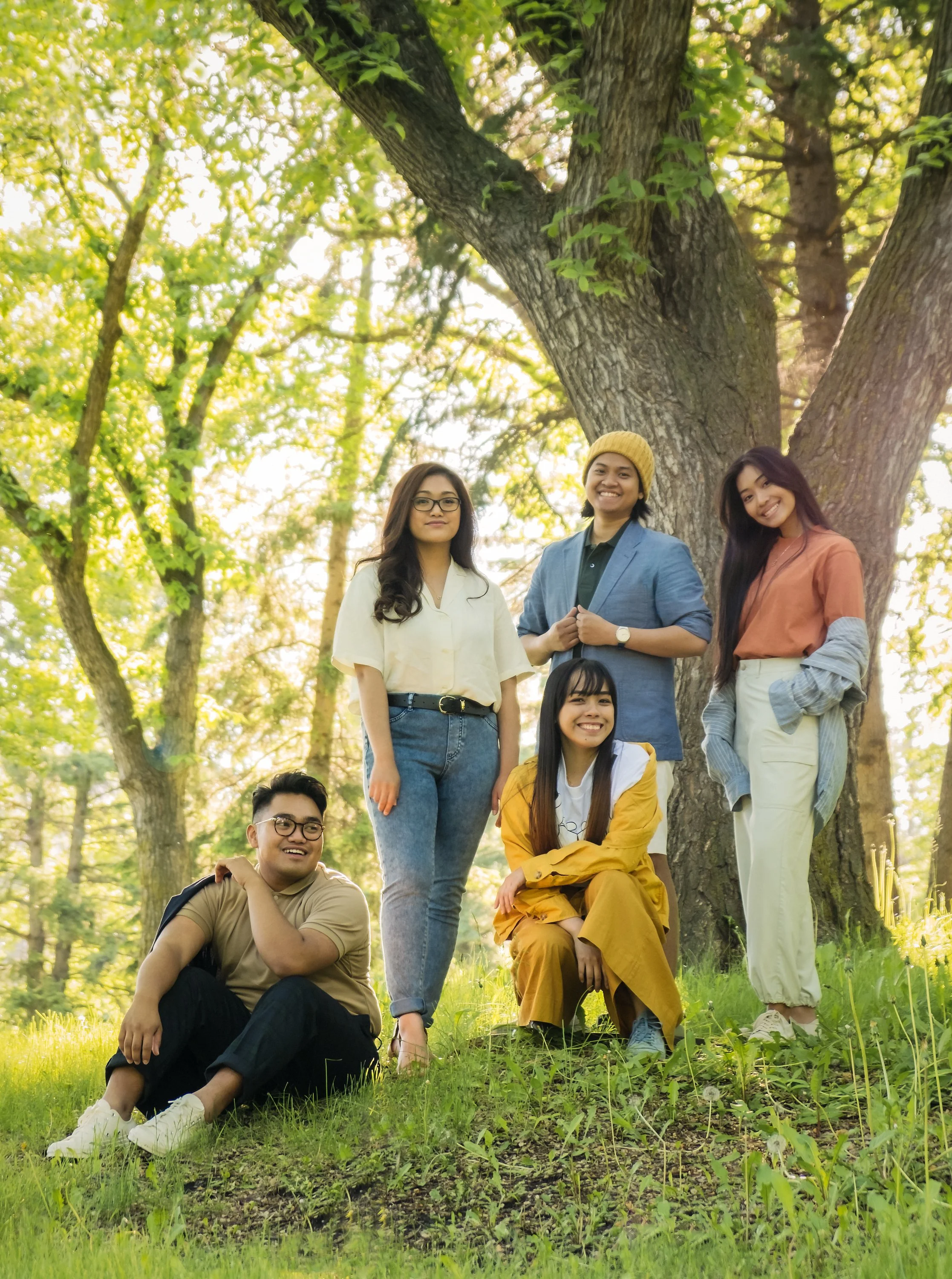 A group portrait of my friends wearing their Uniqlo summer styles taken in 2020 at one of the parks in Edmonton city.